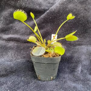 Also known as ‘Dionaea Muscipula Akai Ryu’, Venus Flytrap ‘Red Dragon’ turns dark red in full sunlight and is a must-have for any flytrap collector. Akai Ryu is Japanese for “Red Dragon.” This is a gorgeous variety of Venus Flytrap that exhibits beautiful deep burgundy red traps and petioles throughout the year. Traps have golden green margins. Very young plants frequently show all red coloration. Juvenile or low lit plants may show some green color. This is a registered cultivar from Ron Gagliardo and the Atlanta Botanical Gardens.